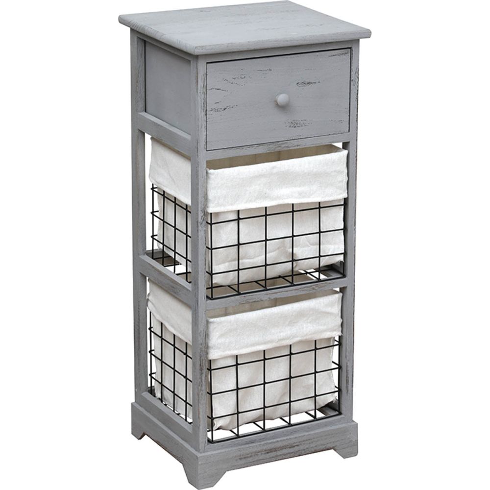 Έπιπλο Mdf με 1 Συρτάρι και 2 Μεταλλικά Καλάθια Γκρι με Λευκό Ύφασμα 34x30x79 9823